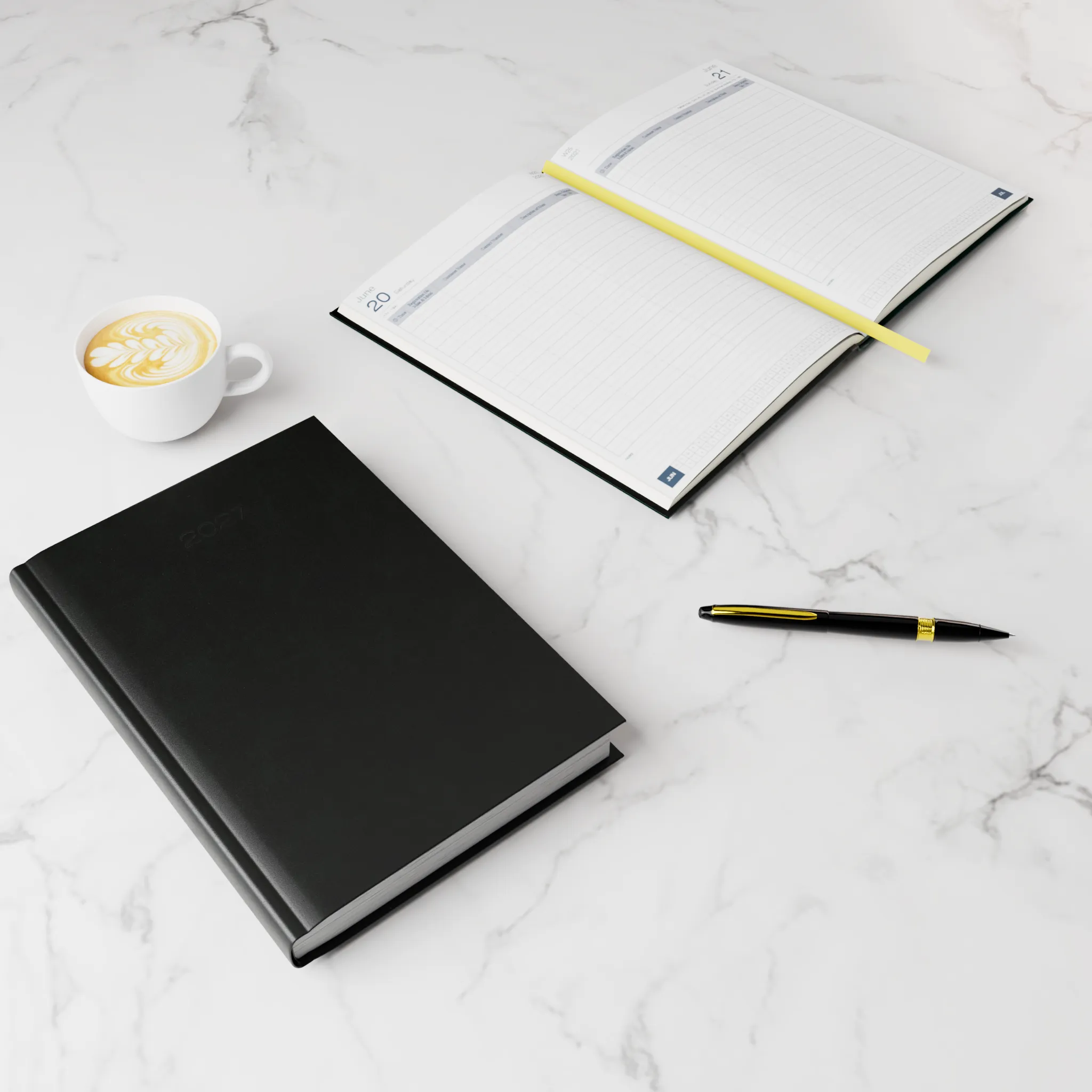 • Features: White ribbon marker for easy access to your current day