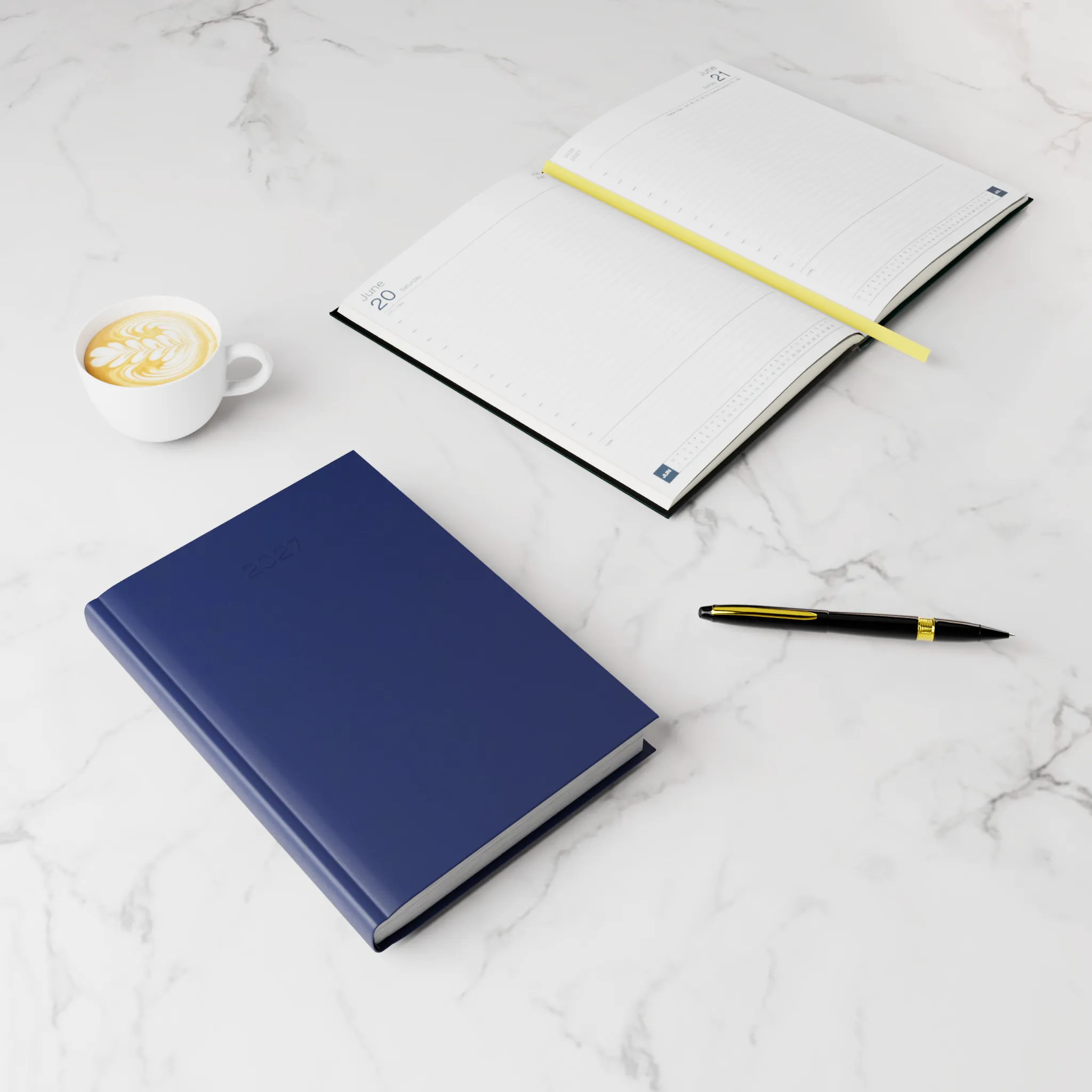 • Design: Elegant debossed year dates for added sophistication, White ribbon marker for quick date access