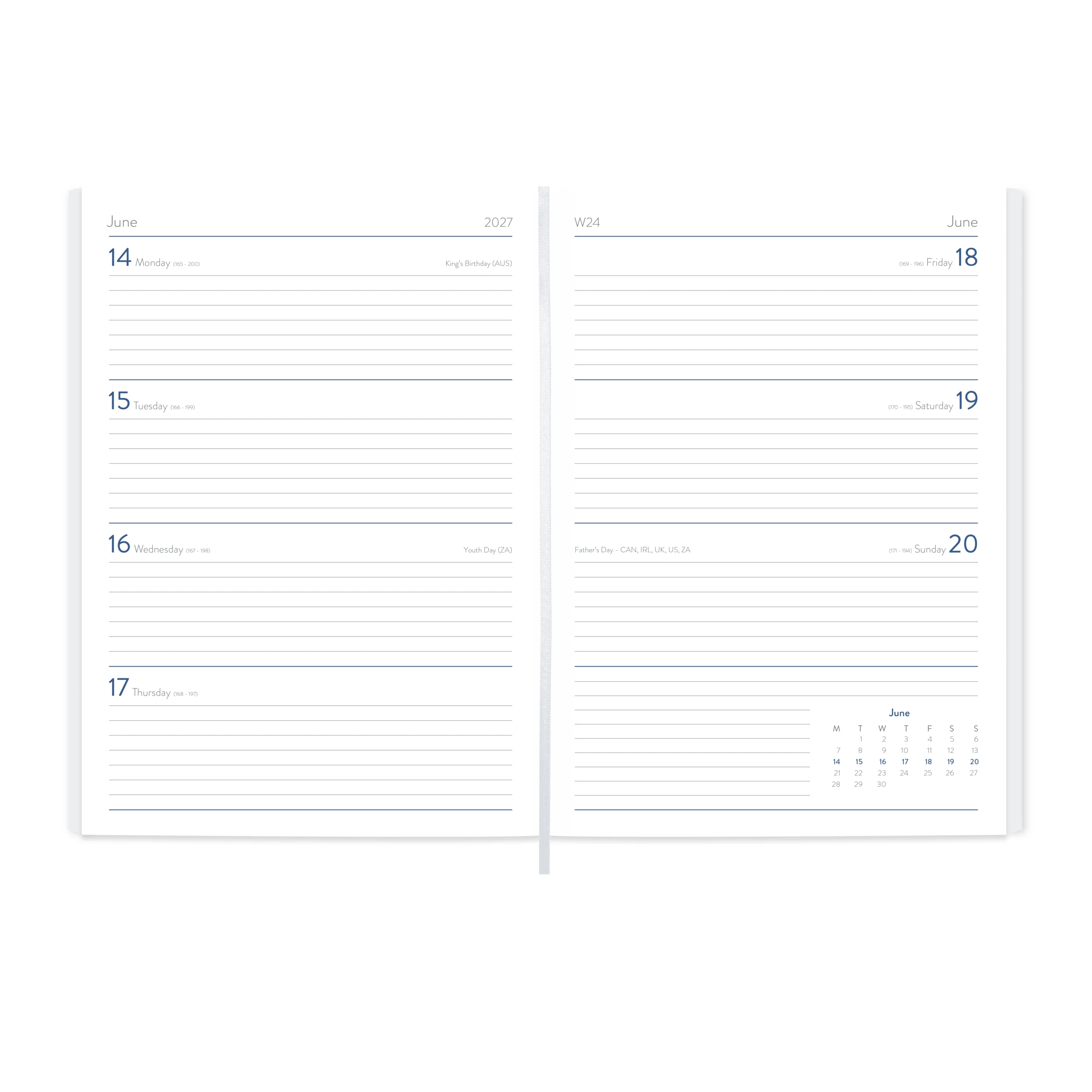 • Design: Elegant debossed year dates for added sophistication, White ribbon marker for quick date access