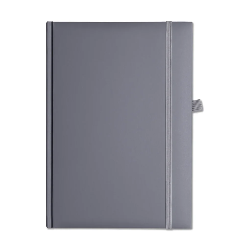 A stylish and functional companion, the Lewes SmoothGrain A5 Notebook from our Express Range is ideal for daily use. Its smooth vegan leather cover is accented with perimeter stitching for a premium finish. Inside, white FSC ruled pages provide a sustainable writing surface. With its elastic strap for closure, pen loop for convenience, and ribbon marker for easy reference, this notebook blends elegance with practicality