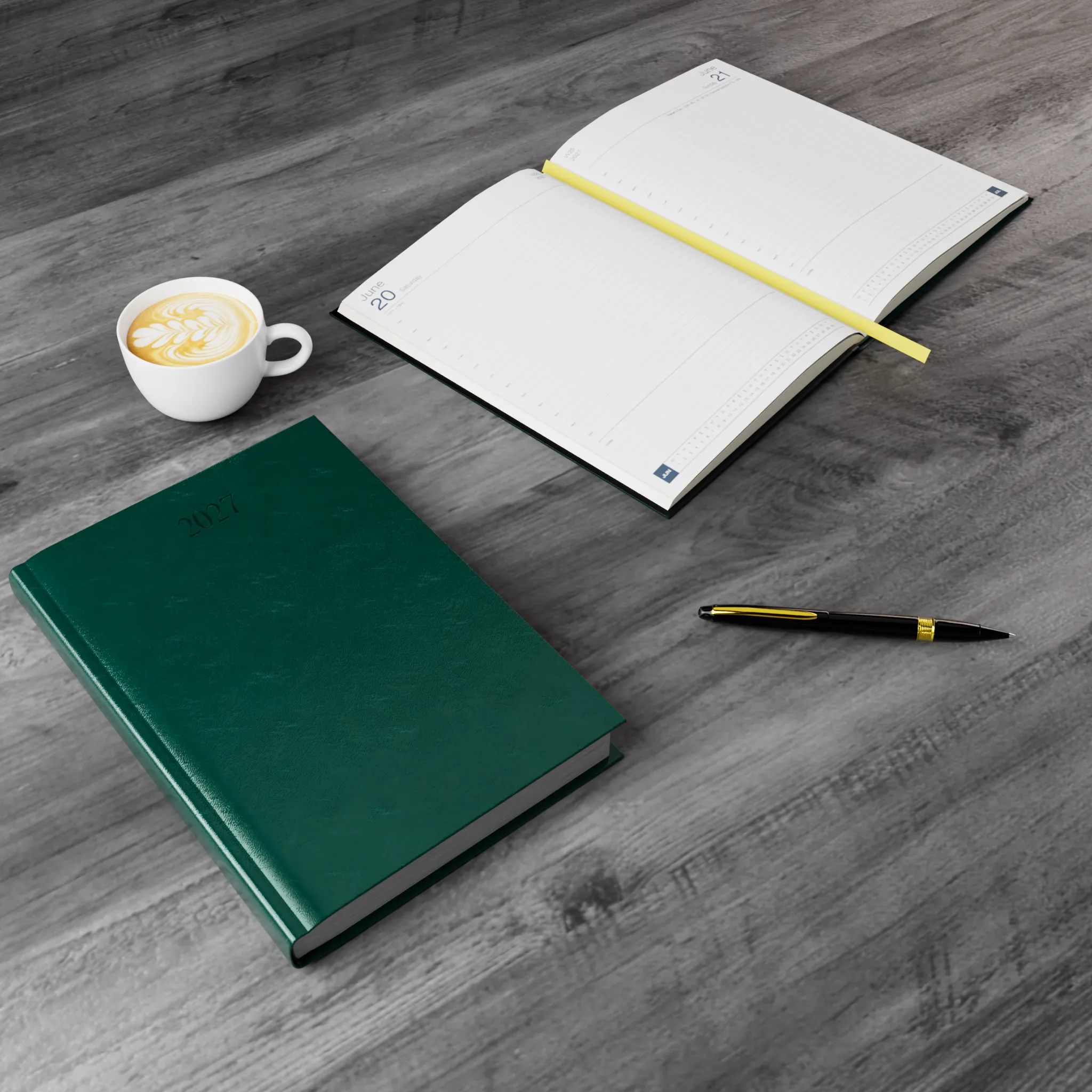 Richmond FineGrain A4 Desk Diary, Day Per Page, Green